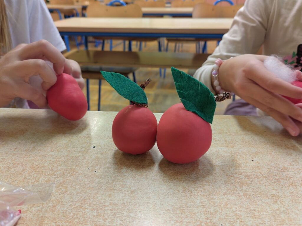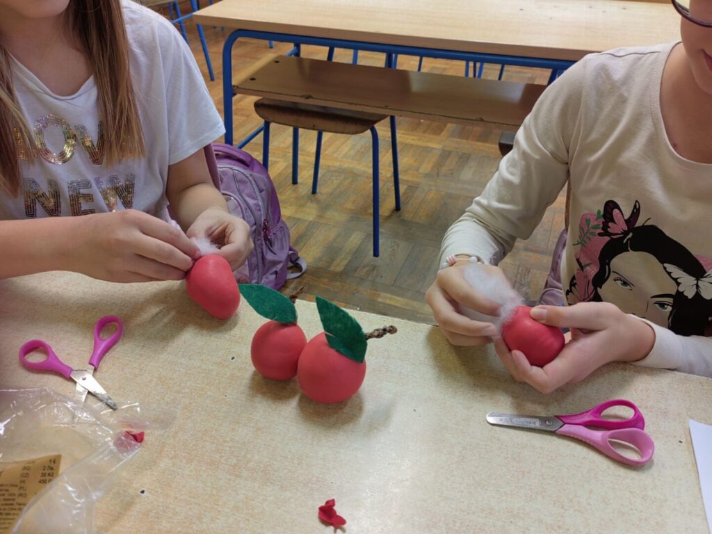 Na izvannastavnoj aktivnosti Mali kreativci, učenice su punjenjem balona izrađivale jabuke.