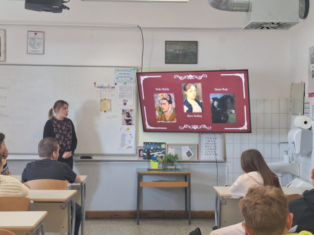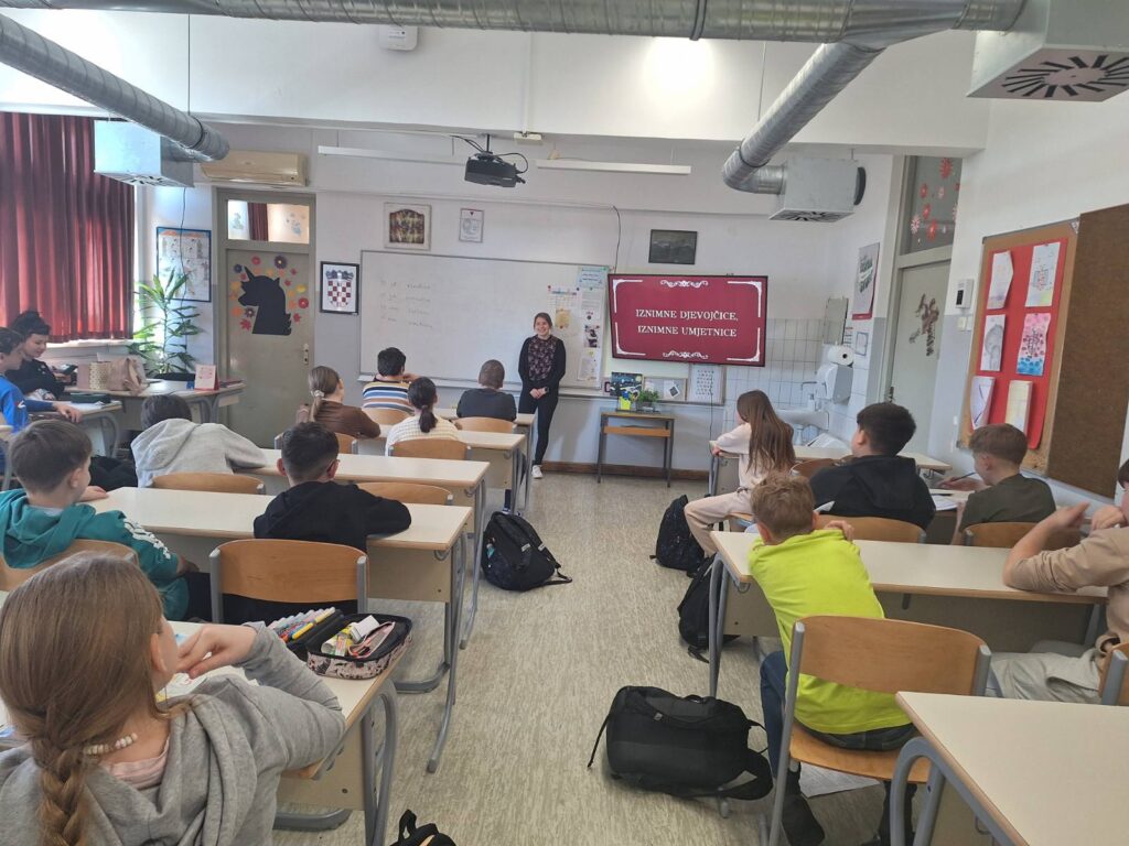 U četvrtak, 9. travnja 2026., učenici 5.e su sa svojom razrednicom Ines Vađunec ugostili na Satu razrednika djelatnice Muzeja grada Koprivnica Martu i Mašu. Povod je bilo zanimljivo i edukativno predavanje posvećeno iznimnim djevojčicama i umjetnicama koje su svojim talentom, hrabrošću i upornošću ostavile dubok trag u povijesti umjetnosti i društva.