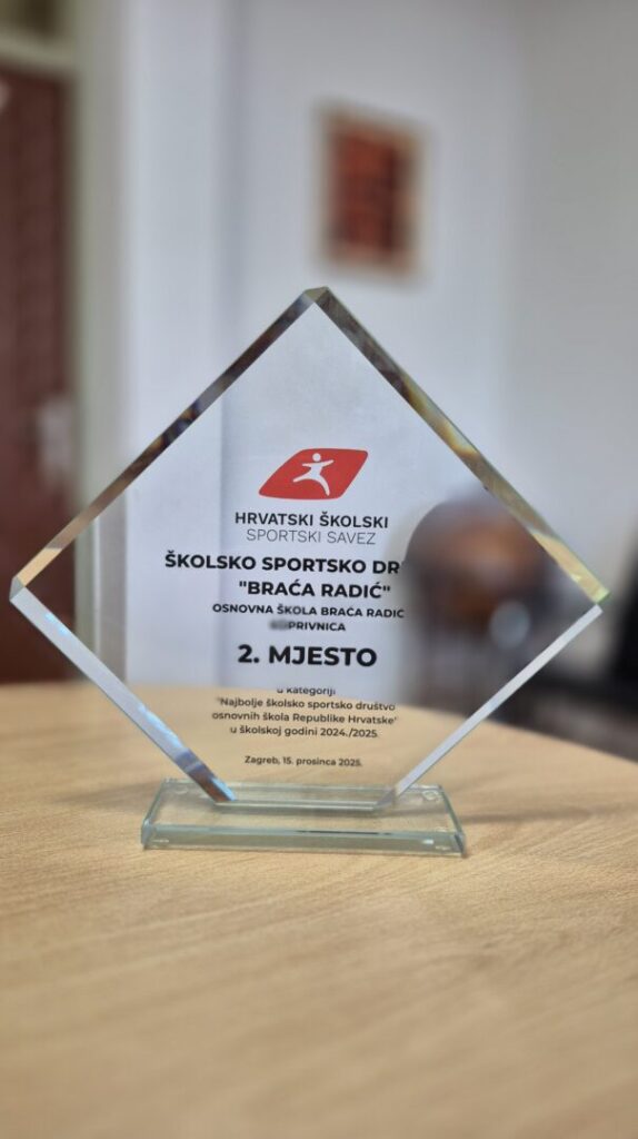 Na Svečanosti školskog sporta koja se održala 15. prosinca u Hotelu International u Zagrebu, Hrvatski školski sportski savez dodijelio je Školskom sportskom društvu „Braća Radić“ nagradu za drugo mjesto u kategoriji „Nabolje školsko sportsko društvo osnovnih škola Republike Hrvatske u školskoj godini 2024./2025. Nakon osvojenog trećeg mjesta prije dvije godine, OŠ „Braća Radić“ Koprivnica napravila je novi iskorak te potvrdila predani rad mentora Mihaela Buzine i Jasmine Markić kao i brojnih učenika koji su svojim odricanjem i marljivim radom ostvarili vrhunske sportske rezultate na županijskoj i državnoj razini.