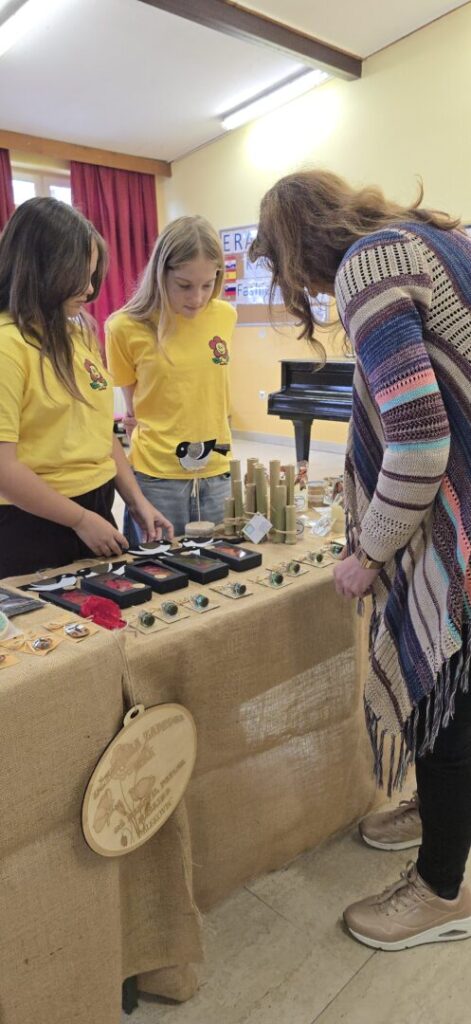 Učenice Nera Dombaj i Julia Mađerić, učenice 5. razreda iz učeničke zadruge „Mak“ predstavile su proizvode svoje zadruge na prodajnom štandu u holu škole, a posebno su se istaknuli njihovi proizvodi s motivom bregunice.