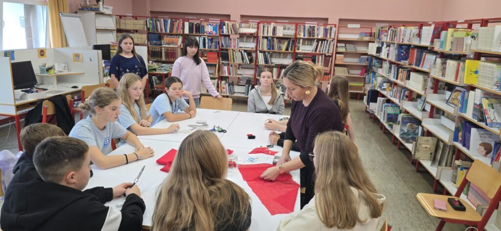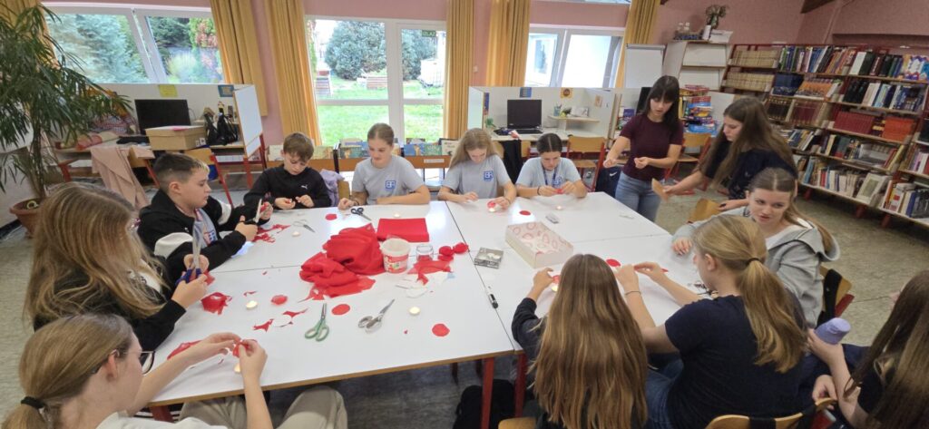 Voditeljica zadruge Sabina Matiša i zadrugarke Nika Matić (8. razred) i Rea Mikulan (6. razred) održale su radionicu izrade broševa na kojoj su naši zadrugari, članovi Kreativne grupe, imali priliku naučiti postupak izrade broševa maka od tkanine i perlica.