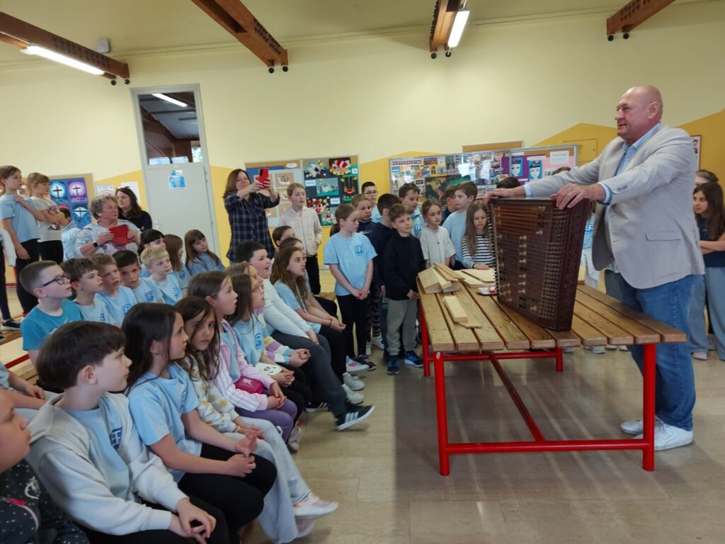 U školi smo imali posebnu i nesvakidašnju čast ugostiti gospodina Marijana Fučeka koji je sa sobom donio jedan gotovo zaboravljen, ali iznimno vrijedan dio naše tradicije – cimbule.