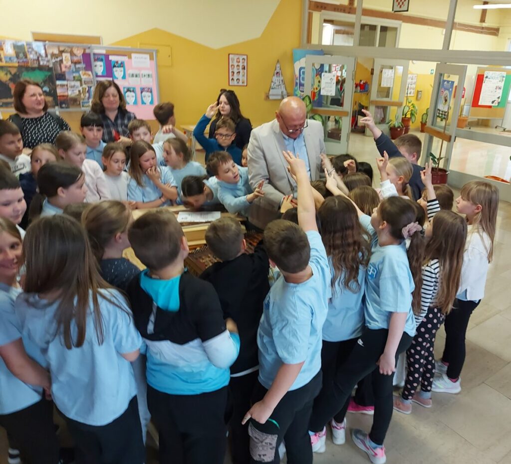Posebno dirljiv trenutak bio je kada je pozvao učenike da se približe i izbliza vide cimbule, pa čak i pokušaju zasvirati. U tim trenucima vidjela se iskrena radost i znatiželja u dječjim očima, ali i zahvalnost što su dio nečega tako autentičnog i vrijednog.