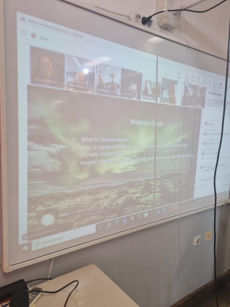 U sklopu Erasmus+ projekta Responsible 2025, 15. travnja održan je online seminar na temu održivosti, u organizaciji GeoCamp Iceland. Na seminaru su sudjelovali učitelji i učenici iz svih partnerskih zemalja uključenih u projekt: Islanda, Francuske, Turske, Rumunjske, Norveške i Hrvatske.