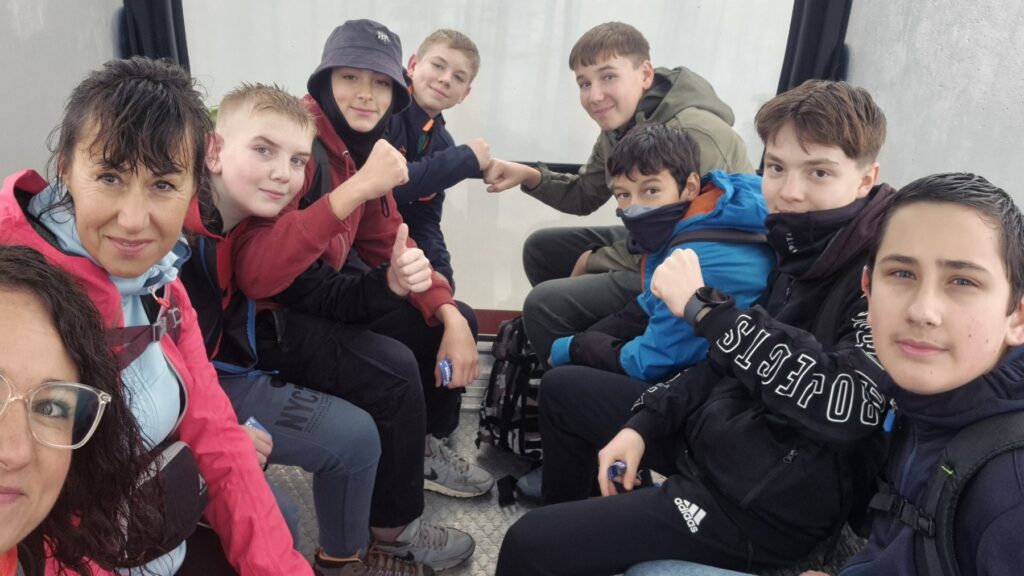 Spust ovaj put nismo išli pješice, već smo kupili karte i vozili se sljemenskom žičarom. Iako su se vidici tek nazirali kroz maglu, uživali smo u vožnji i razmišljali smo o nadmorskoj visini koju smo prepješačili. Pri dolasku do autobusa izuli smo blatne i mokre gojzerice, te se prezuli u udobniju i suhu obuću. Krenuli smo doma.