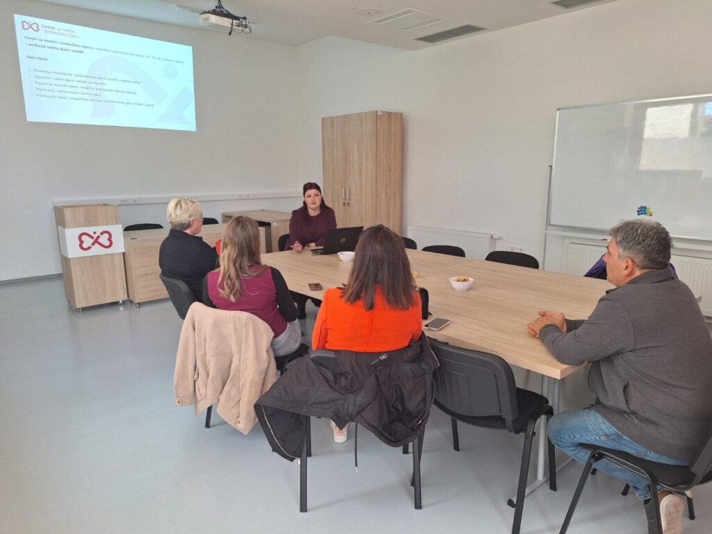 Voditeljica stručnog i znanstvenog razvoja Centra za nestalu i zlostavljanu djecu Silvija Hinek predstavila je njihov rad, uključujući poludnevni boravak za djecu i mlade, dok je voditelj ureda Centra za sigurniji Internet Ivan Ćaleta upoznao goste s tom nacionalnom platformom koja uspješno djeluje već 15-ak godina. Centar pruža edukacije djeci i mladima o ponašanju na internetu te pomaže u slučajevima bilo kakvog zlostavljanja online. Njima se mogu obratiti pozivom ili porukom te prijaviti seksualno zlostavljanje, neželjene i neprimjerene sadržaje na Internetu, potražiti savjete kako reagirati u slučaju internetskog nasilja i kome se obratiti. Stečena nova saznanja o prevenciji internetskog nasilja projektni tim i suradnici na projektu Internetsko NEnasilje primijenit će u izradi edukativnih plakata, koji će biti postavljeni u svim školama na području djelovanja GDCK Koprivnica.