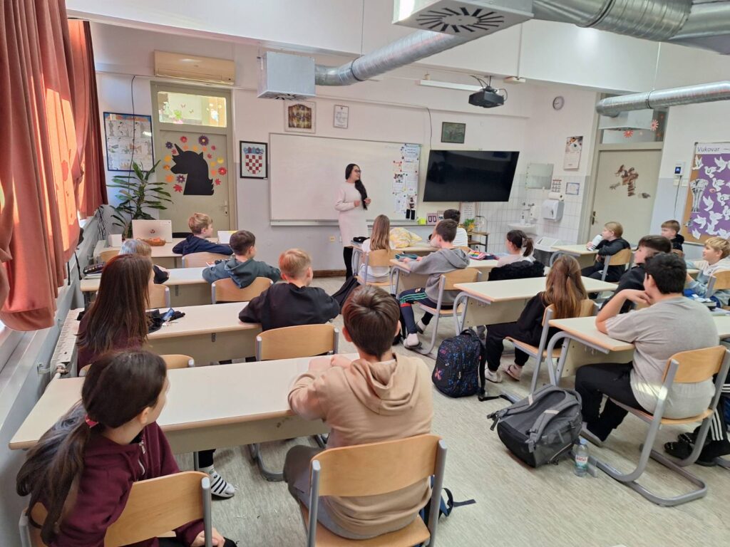 U četvrtak, 27. studenoga 2025., učenici 5.e razreda su sa svojom razrednicom Ines Vađunec ugostili na Satu razrednika Doru Kolačko, mamu naše učenice Dune Novak. Gospođa Kolačko održala je edukativno predavanje za učenike na temu Pubertet i emocije.