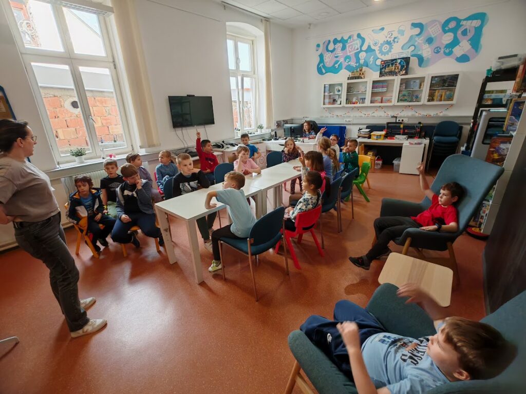 Prava poslastica je bila posjeta Makerspace-u u kojem su učenici vidjeli 3D printer i saznali kako mogu doći tamo pa si isprintati predmet koji bi htjeli imati. Posebno zanimljiv je bio robot koji se vozio po stolu i okretao prema djeci kad su nešto rekla. Poslušali su vrlo napetu legendu o mitskim bićima podravskog kraja.