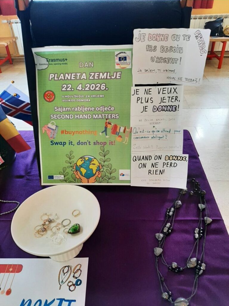 S ponosom možemo reći da je u sklopu Erasmus+ projekta FashionTechEU povodom Dana planeta Zemlje, u našoj školi održan prvi sajam razmjene odjeće – i to iznimno uspješno!