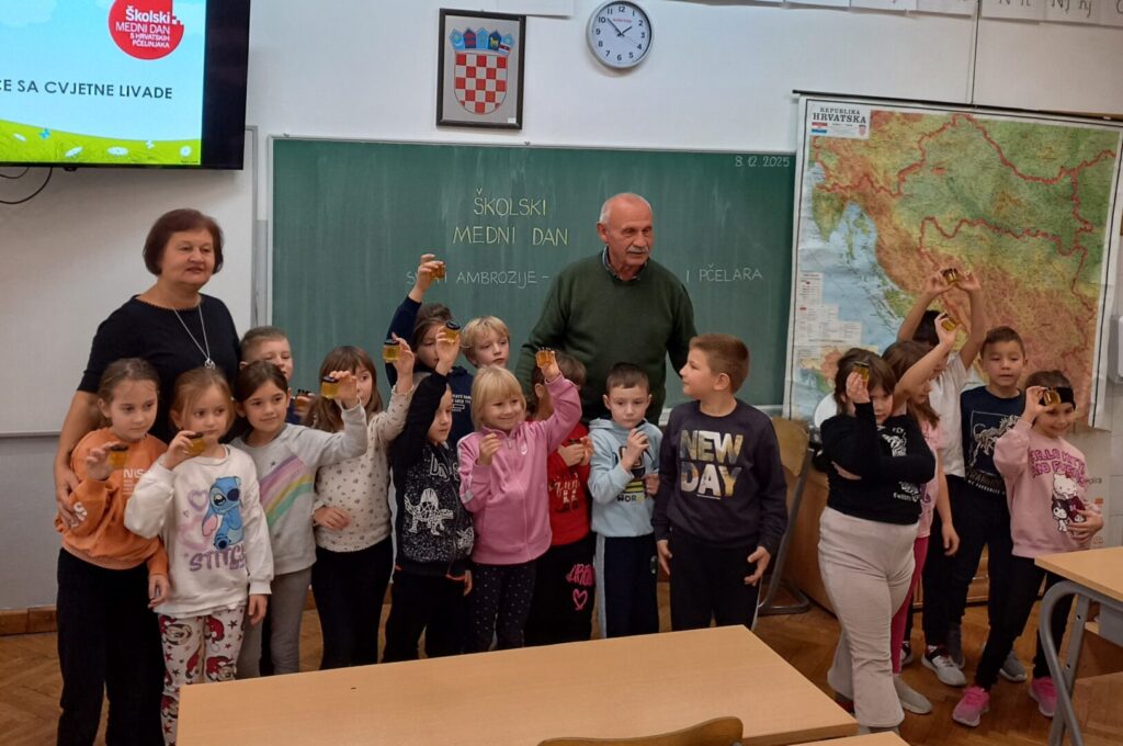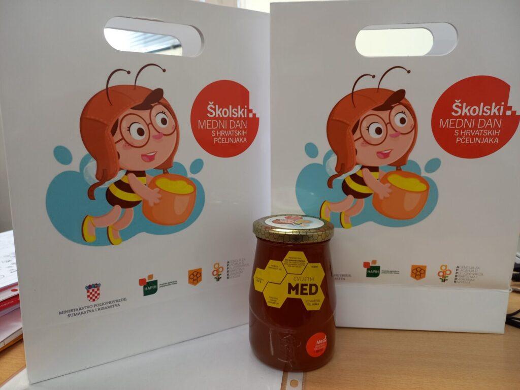 Školski medni dana provodi se s ciljem povećanja udjela meda u prehrani djece, educiranja učenika o važnosti meda kao sastavnog dijela pravilne prehrane i o važnosti pčelarstva za sveukupnu poljoprivrednu proizvodnju i biološku raznolikost te promocije meda. Tako je svaki učenik dobio na poklon prepoznatljivu staklenku meda lokalnog pčelara i slikovnicu Pčelica Jelica i Medo Edo, K. Halužan.