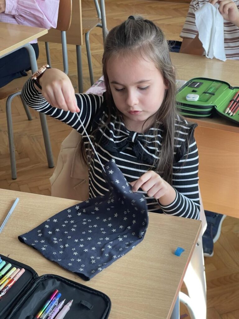U sklopu Tjedna cjeloživotnog učenja, učenici 2.d razreda sudjelovali su u zanimljivoj i korisnoj radionici „Sašij svoj gumbić“. Pod vodstvom učiteljice Ines Turk, u ugodnoj i veseloj atmosferi učili su kako pravilno prišiti gumb te su pritom pokazali veliku spretnost i strpljenje.