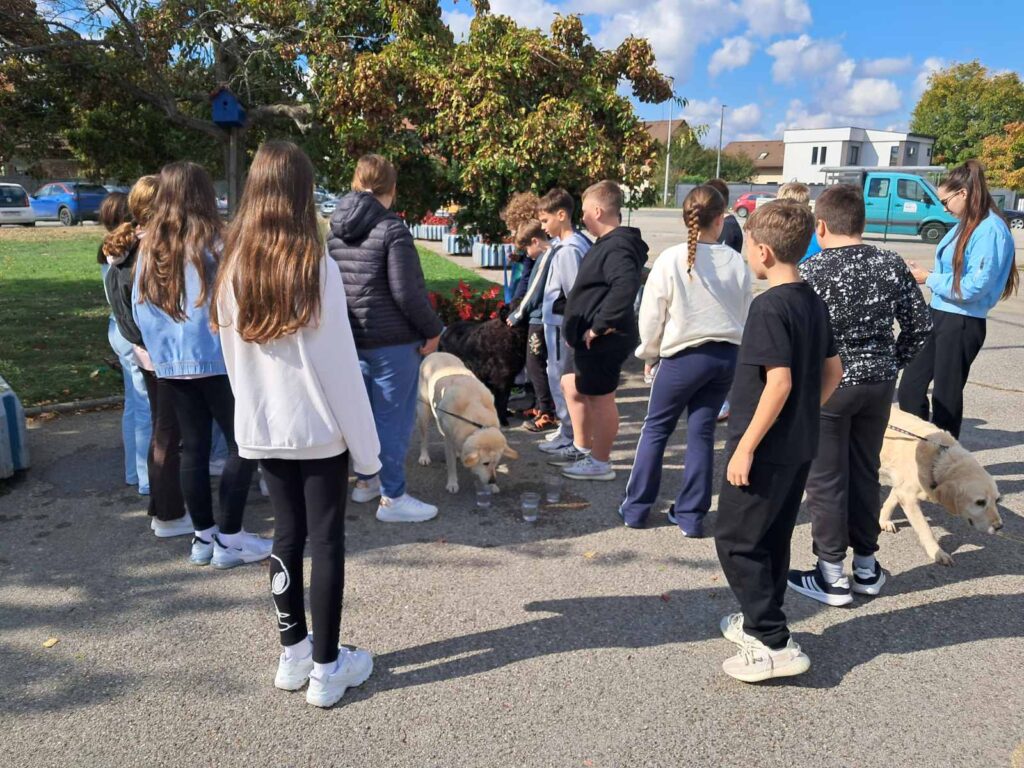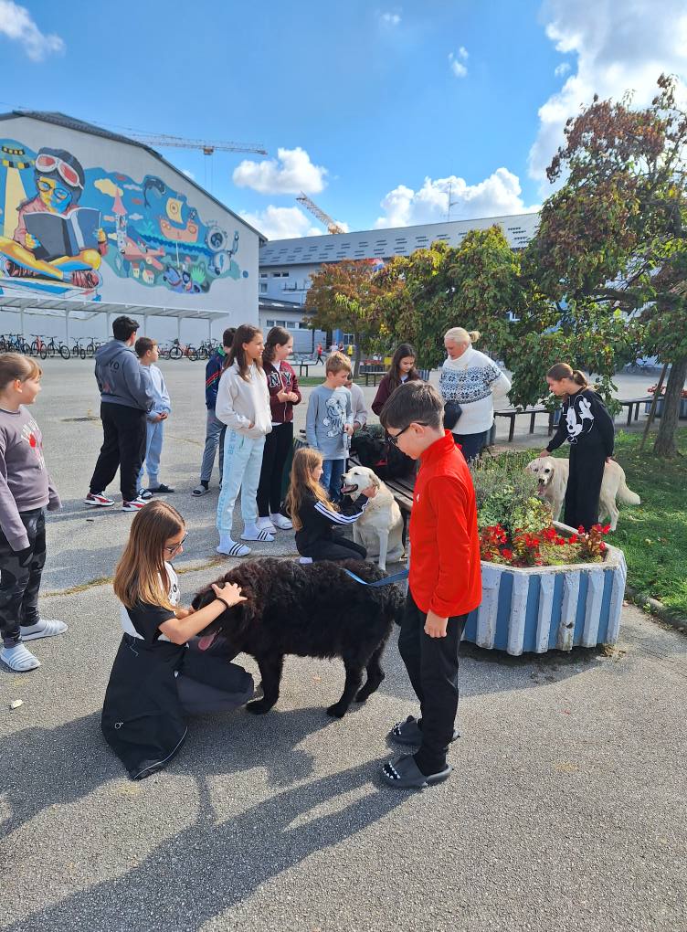 U posjet smo odlučili pozvati pseće štićenike Udruge Lajka iz Novigrada Podravskog koji su došli u pratnji volonterki Marine i Silvije. Na Sat razrednika došla su četiri psa koja su oduševila okupljene učenike. Gospođa Marina ispričala je učenicima zanimljivosti o radu Udruge te ih je upoznala s teškim životnim pričama pasa iz Lajke. Učenici su uživali u igri sa psima, šetali su ih i mazili pa je jedan školski sat prebrzo prošao i bilo nam se teško rastati od umiljatih njuškica.