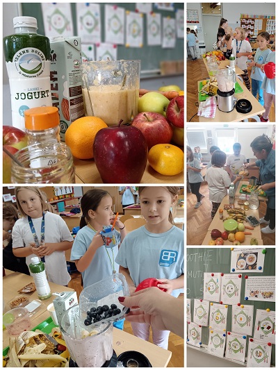 Učenici 2. c razreda u sklopu obilježavanja Tjedna školskog doručka učili su koliko je doručak važan za naše tijelo, zdravlje i dobro raspoloženje ,a zatim i pripremili jednostavan i zdrav međuobrok, popularni smoothie.