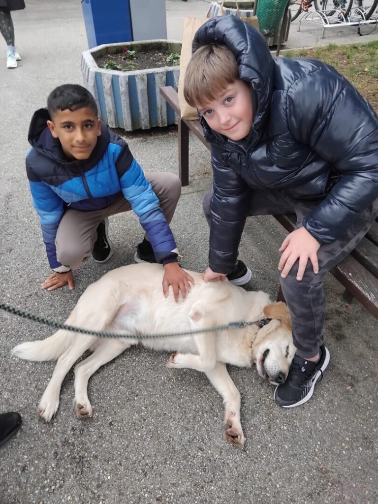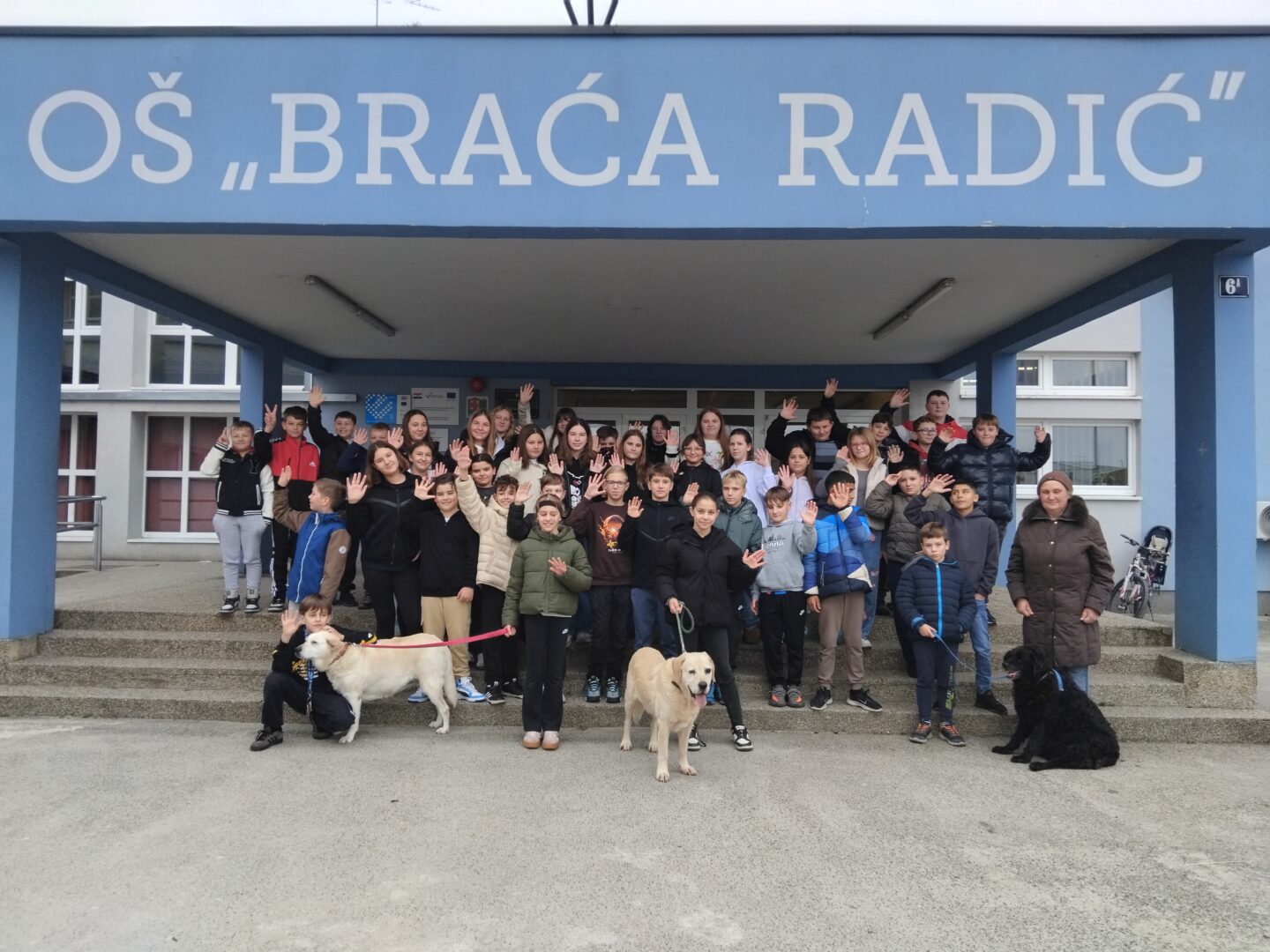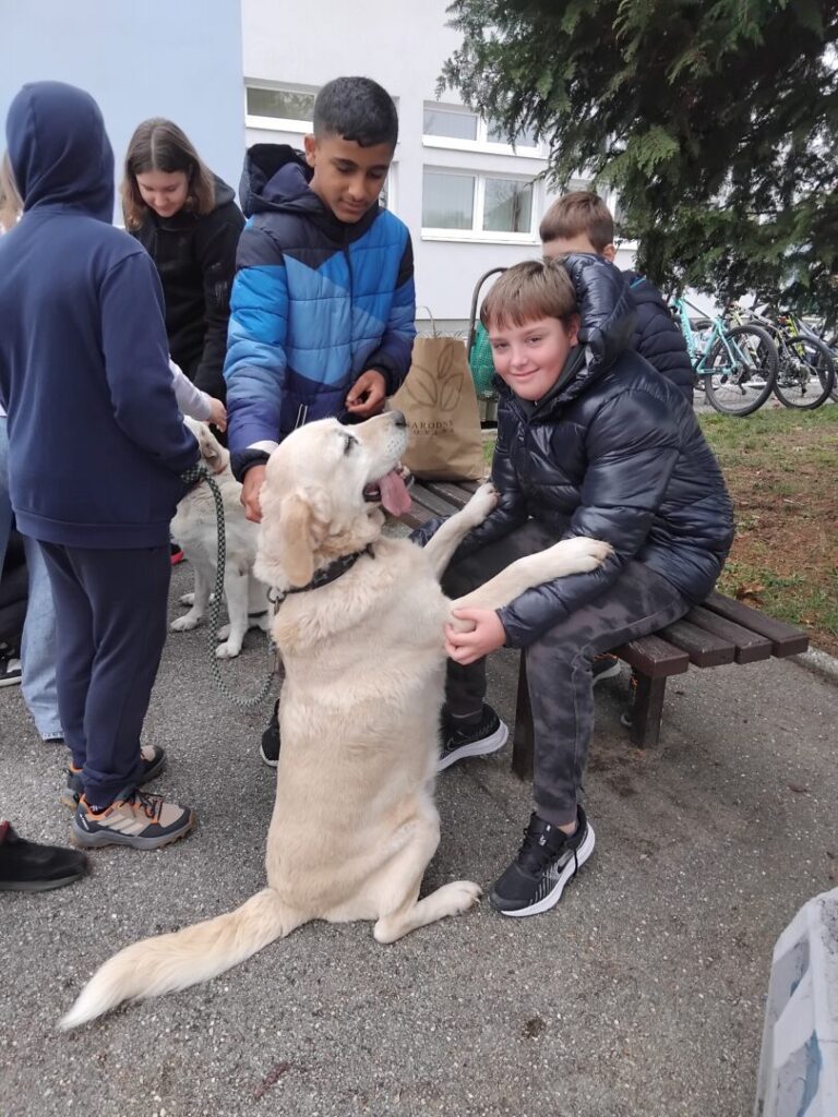 Učenici 5.c i 5.d razreda su sa svojim razrednicama Šteficom Šambula Premec i Anom Markušić proveli jedan školski sat u društvu tri psa.