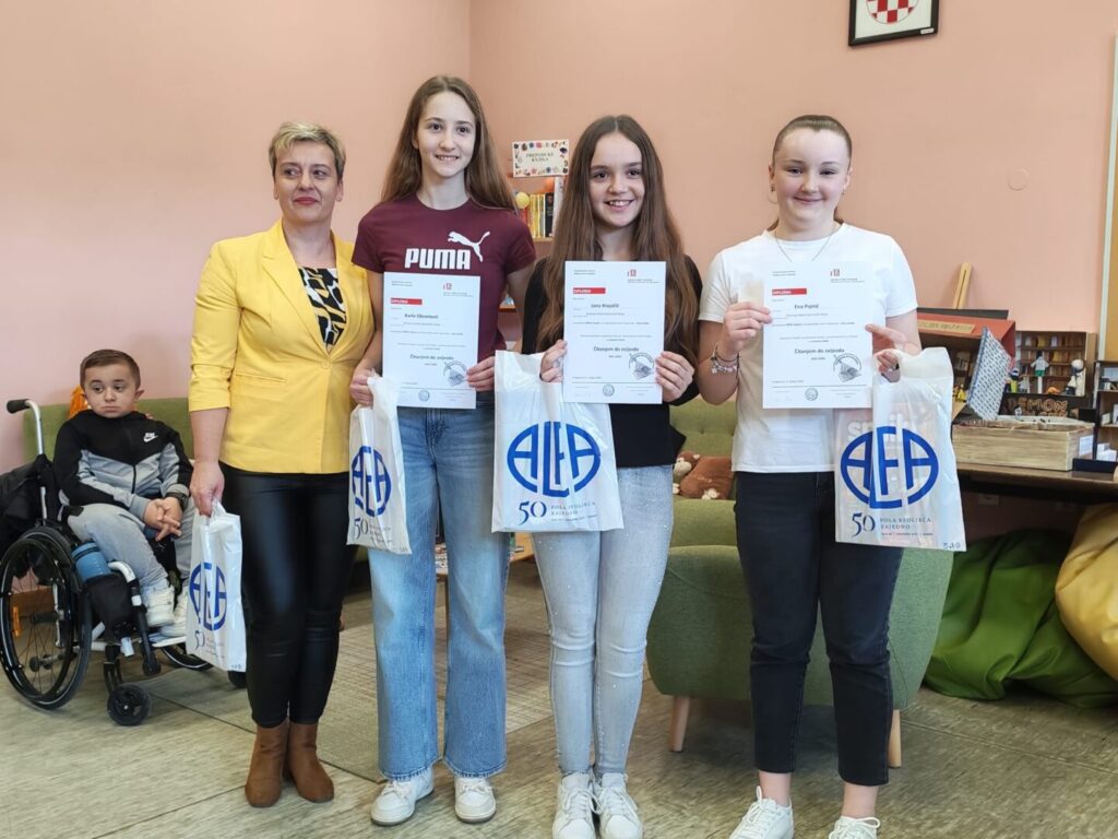 Nagrade za najuspješnije učenike i mentore osigurala je nakladnička kuća Alfa kojoj srdačno zahvaljujemo na podršci i prepoznavanju važnosti projekta.